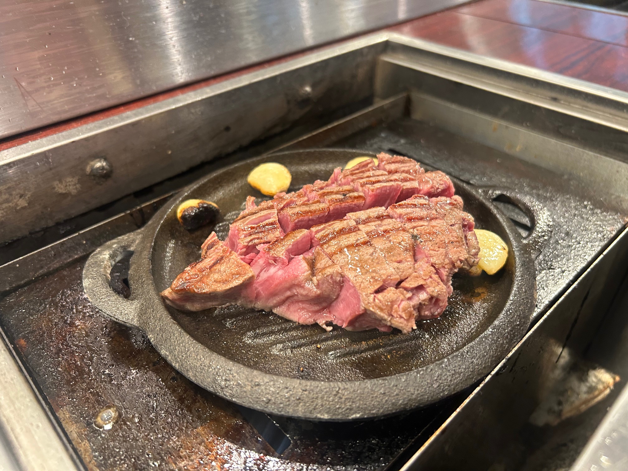 塊の肉がプレゼンテーションされてから店の方が鉄板につきっきりで焼いていただける。