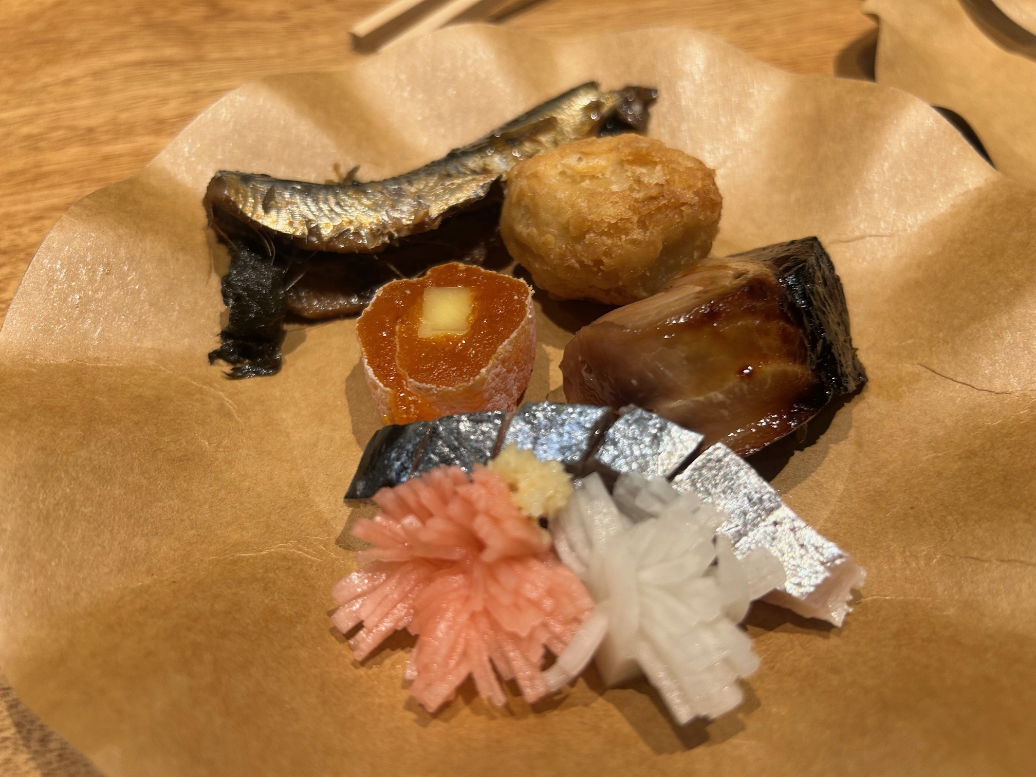どれもいい日本料理の仕事で日本酒のフリーフローとともに振る舞われる。