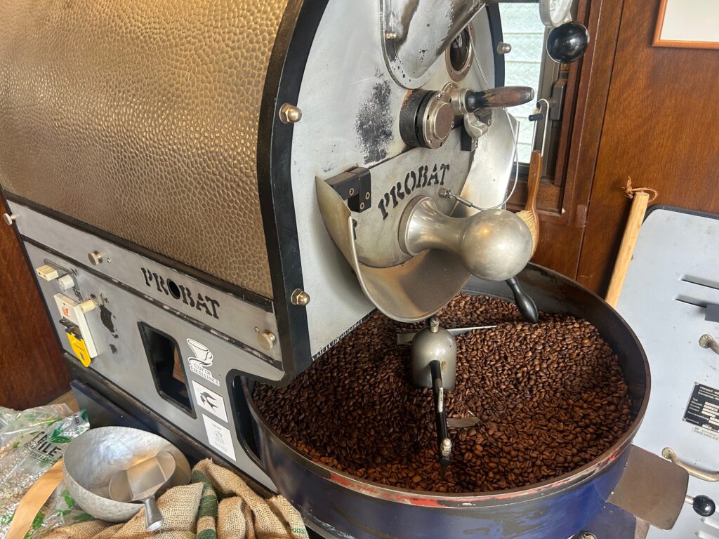 店の入り口に大きな旧式の焙煎機が鎮座。常時シングルオリジンの豆が5種類くらい揃う。基本は私も好きな浅煎りが中心。自家焙煎した豆をハンドドリップで分量をしっかりと測って提供する。
