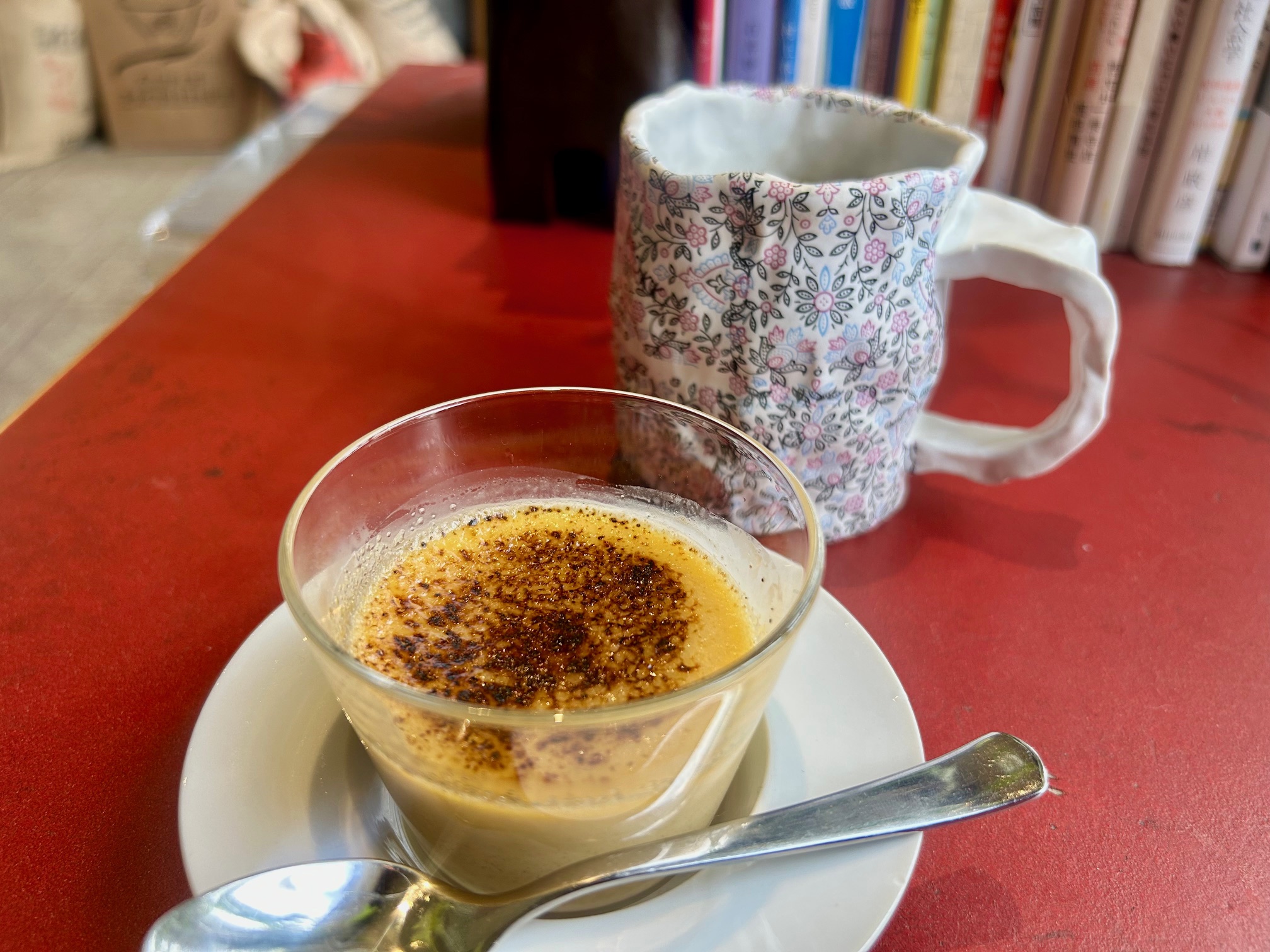 名物のチーズケーキはクリームチーズと生クリーム、卵、砂糖だけを使って焼き上げた濃厚な味わい。この日はクリームブリュレを所望する。飽きのこないシンプルなおいしさはコーヒーの味を一切邪魔しない。居心地も良くてとてもいいお店です。