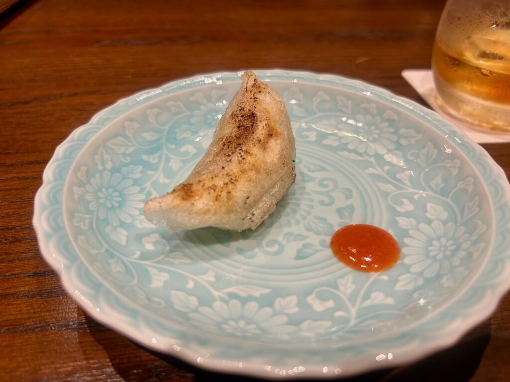 タピオカの粉を使った焼き餃子。海老、豚、黄韮がみっちりと詰まっている。見た目より軽くて5つぐらい食べれそうな感じ。シェフは点心もとても上手でいつも感心する。