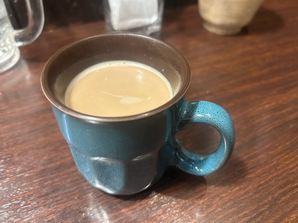 隣の女性客がホットチャイを注文したので一緒にいただく。じんわりと身体が温まるのを確認して店を出る。ごちそうさまでした。