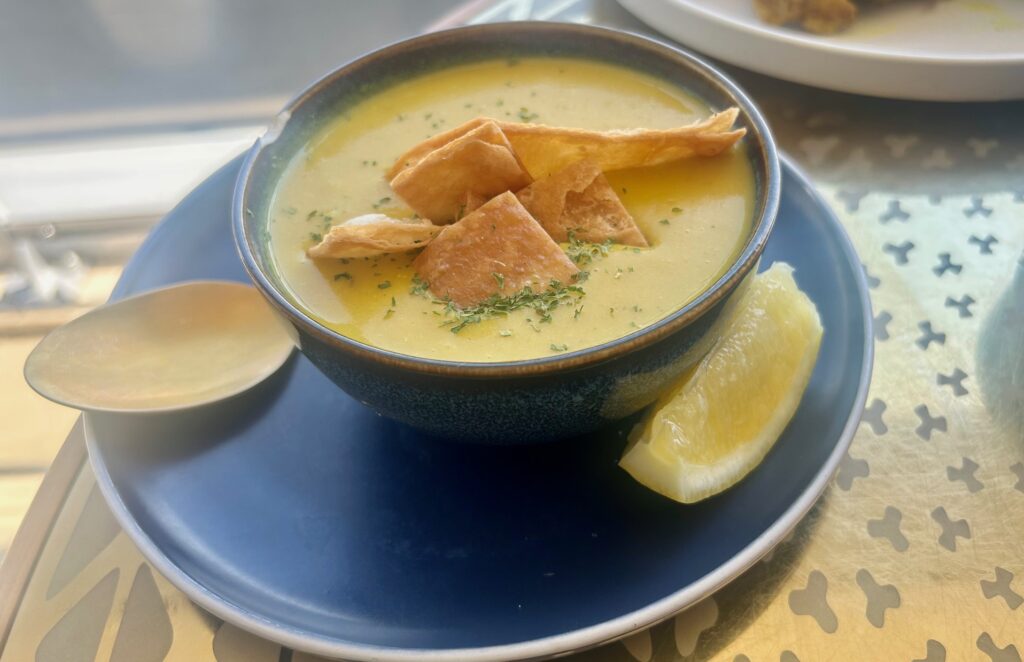レンティルスープ1750円はレンズ豆を潰した濃厚な味わい。途中でレモンを絞っていただく趣向。