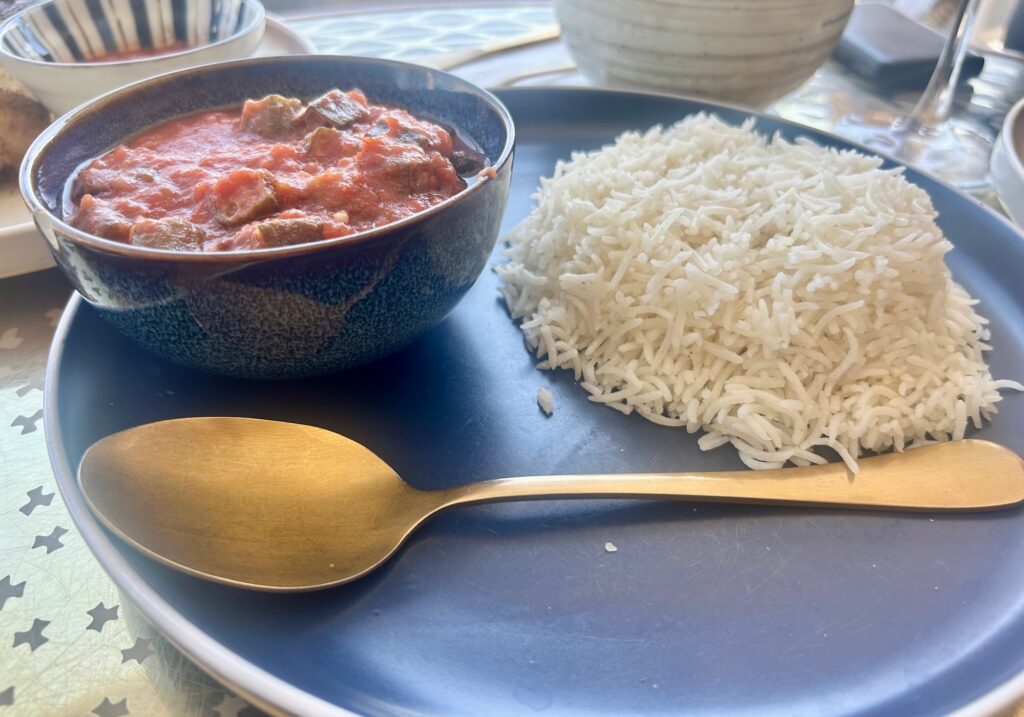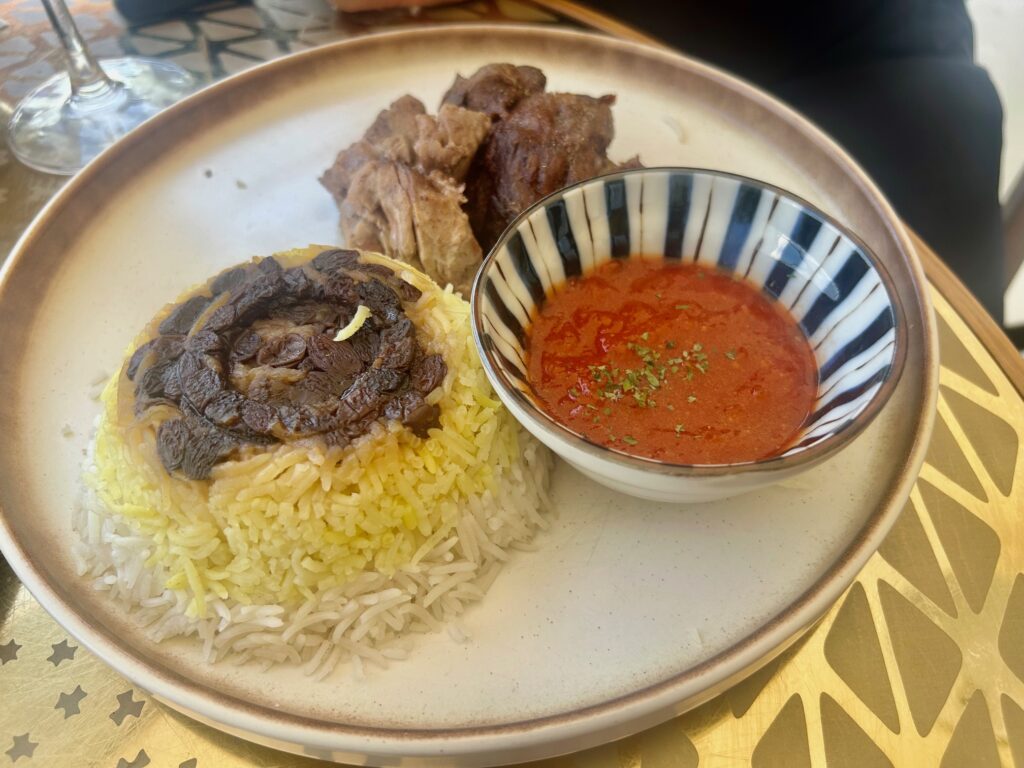 マグースとはスパイスを使用した炊き込みご飯のことらしい。白いご飯の上に黄色いサフランご飯、そしてその上にレーズンが添えられる。パラパラでサラサラなご飯は癖はないけど塩味とスパイスの独特な香りあり。ラム肉は臭みもなくてとても柔らかい。小皿のトマトソースをラムにつけるとさっぱりいただける。思いのほかマイルドでスパイスやハーブだらけではなかった。