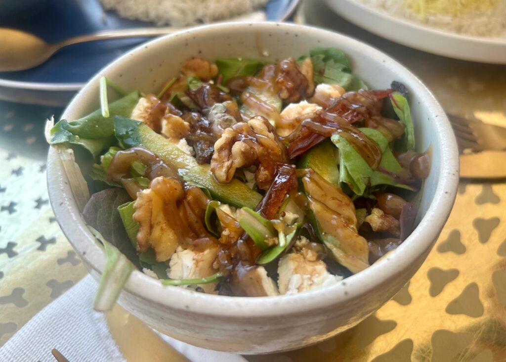 ジャルジールサラダ1950円はルッコラ、ゴーダチーズ、胡瓜、少量のデーツに酸味のあるドレッシングをかけたもの。特にどおってことはない。