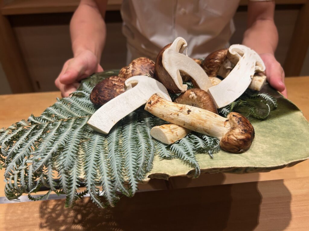 最初にこの日のメインディッシュの高野山産の松茸のプレゼンテーション。