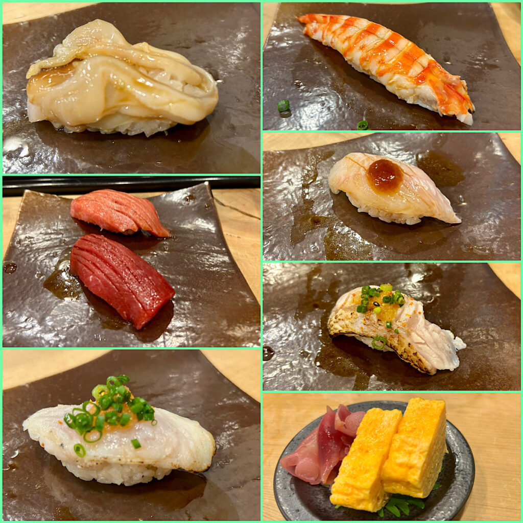 続いて北寄貝のひも部分250円。私は食べなかったけど塩釜の天然本鮪赤身300円とトロ600円。脂乗りまくりの皮目を炙ったノドグロ600円、天然車海老600円、コリコリ食感の生穴子250円、カマス炙り250円など。どれも一仕事加えたものばかり。最後に大きな玉子焼きでフィニッシュ。