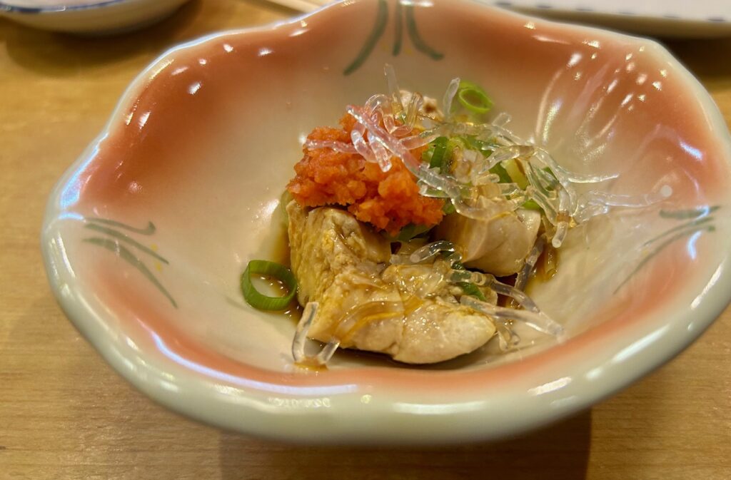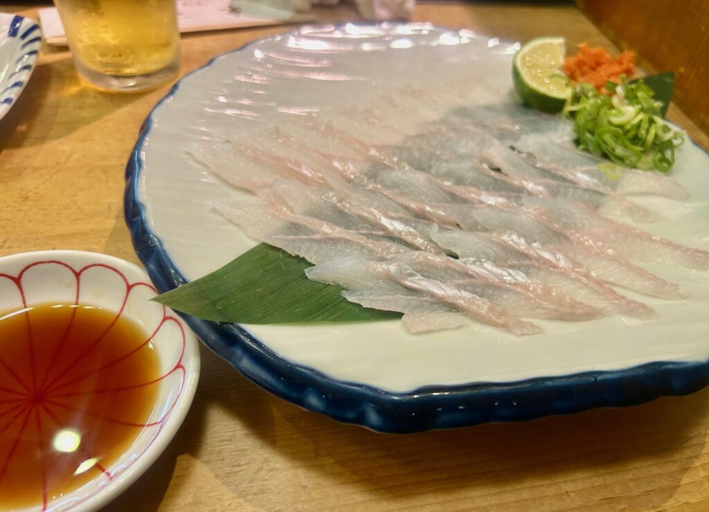 刺身は迷ったけど珍しい穴子の薄造りを注文。脂も載っていてポン酢との相性抜群。