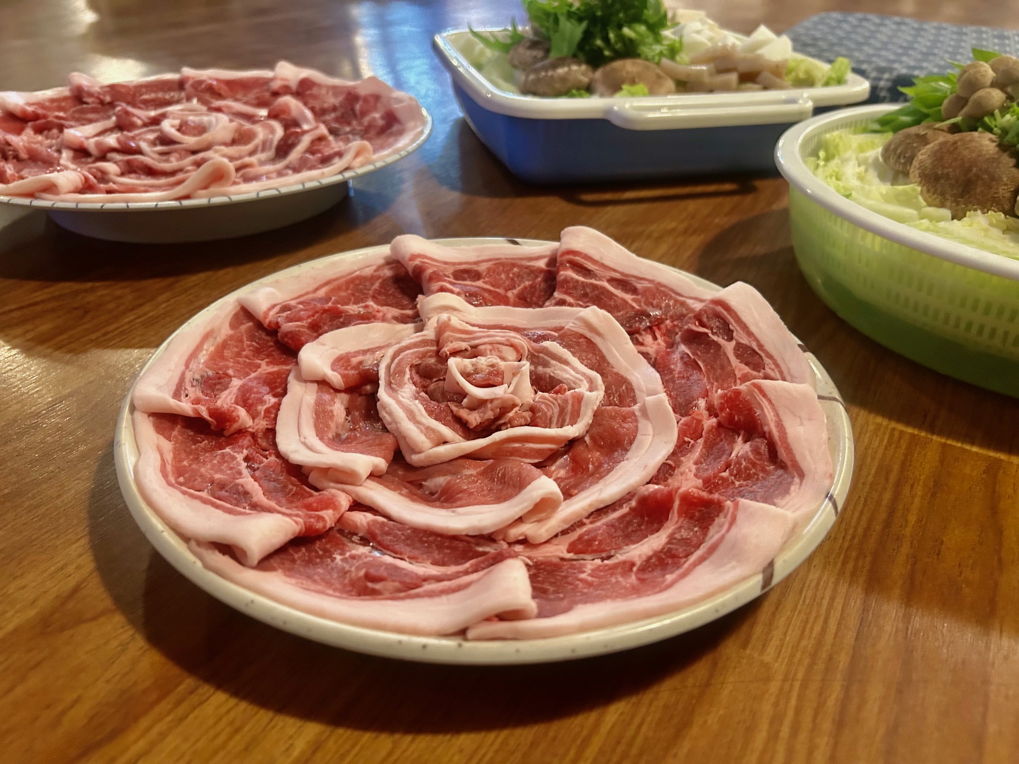 あっさりした味噌出汁と旨みたっぷりの脂身を纏った猪肉との相性が抜群。いくつかの部位の猪肉は癖などは全くなく柔らかく脂身も全くしつこさを感じない。カロリーも牛肉の半分くらいでビタミンBが豊富で高タンパク低カロリーとのこと。野菜のおいしさは特筆もの。