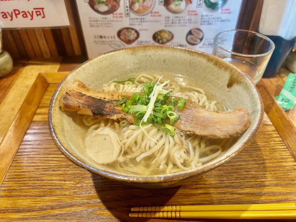 スープをいただくととても優しい味わいで旨みと深みもある。出汁にはカツオと昆布がベースで少量の煮干しとあさり、泡盛が入っているとのこと。ありがちな鶏や豚の骨は入っていない。塩は沖縄のものを使用。
