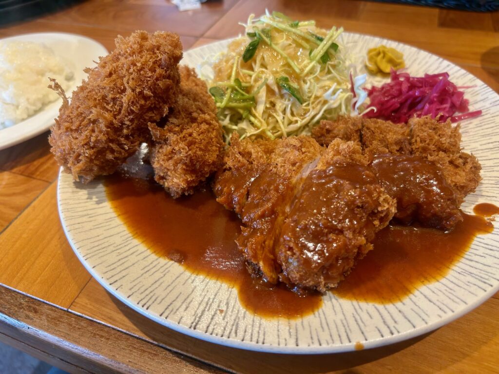 この日はヘレカツとクリームコロッケの盛り合わせを注文する。