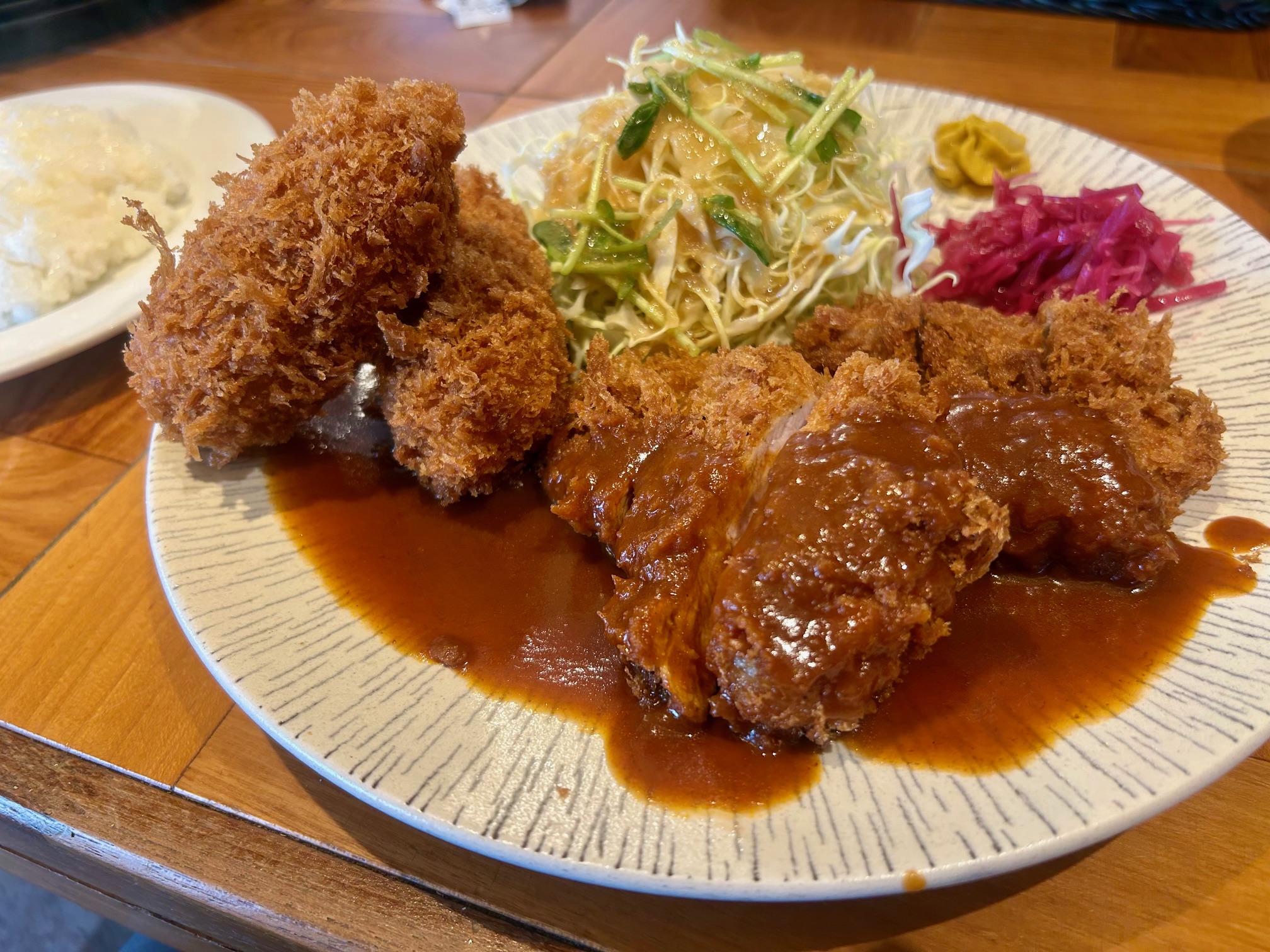 メニューは一般的な洋食メニューが中心。好きな主菜を2品選べる1980円のスペシャル盛り合わせがおすすめとのこと。それぞれの主菜はロースカツ、エビフライ、ヘレかつ、チキン南蛮、トマトチーズカツ、ハンバーグ、クリームコロッケ、トンテキなど・・・