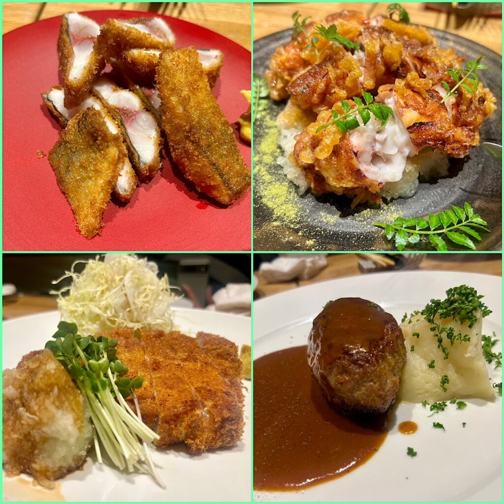 同じくサスエ前田魚店から仕入れたヤリイカのフリットはたっぷりと白子と卵を持っていて食感も楽しい。こちらもレアに揚げられていて新鮮なイカの刺身をいただいているような感。滋賀の「サカエヤ」さん仕入れの鹿児島福留牧場の豚のポークカツはおろしポン酢でいただいたんだけど脂が甘くて口の中で融解するのが実感できる。