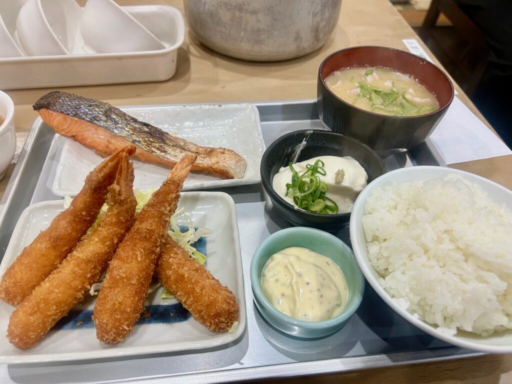 この日は好物のエビフライと豆乳豆腐と豚汁と鮭の塩焼き。これで1550円少し値上げされたような気がするけどしょうがない。艶々のご飯はやっぱり一級品。遅がけに行くとお土産におにぎりをくれることもある。ごちそうさまでした。