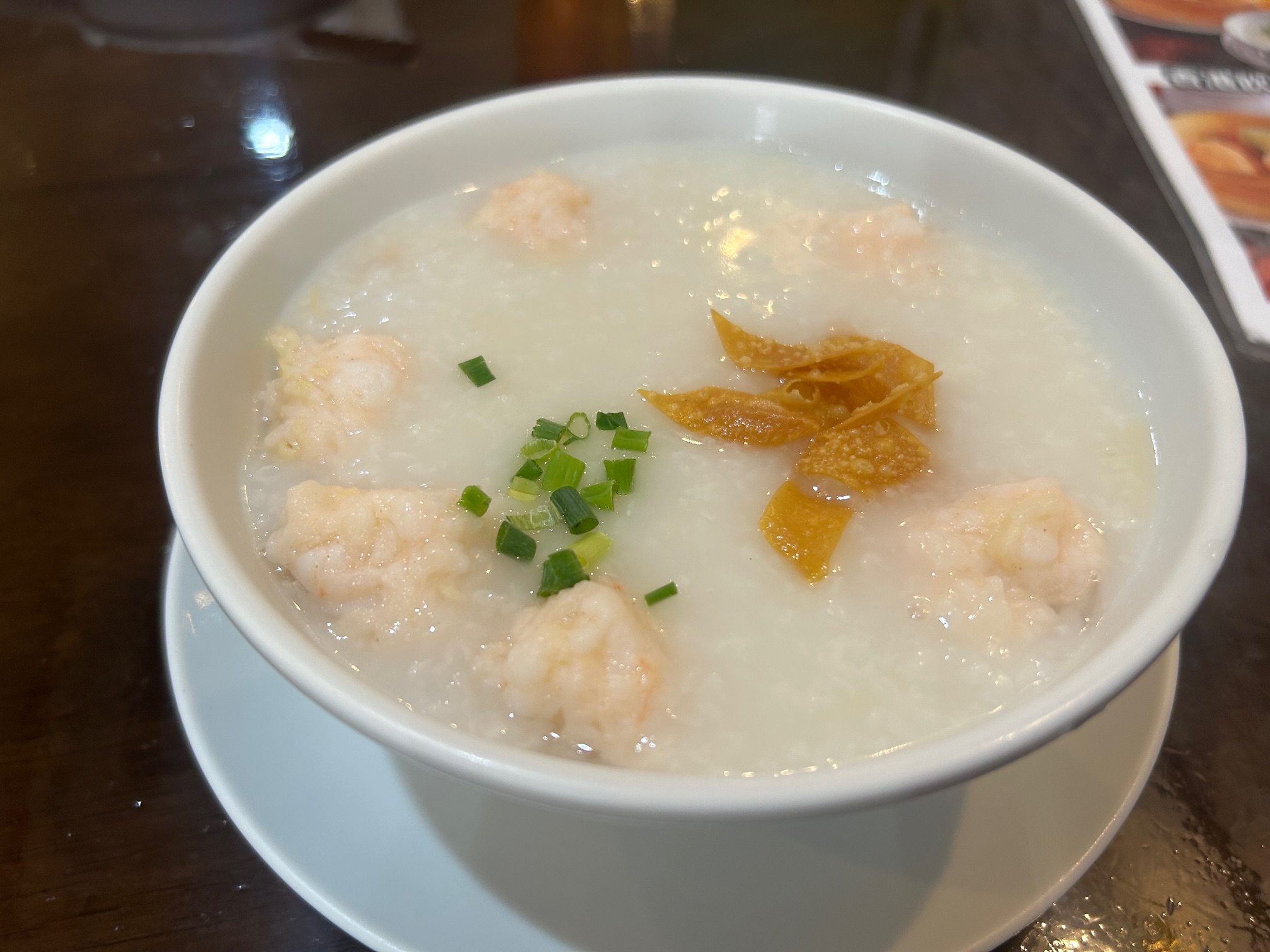 この日は前日食べ過ぎたのでエビ団子入りのお粥1200円を注文する。