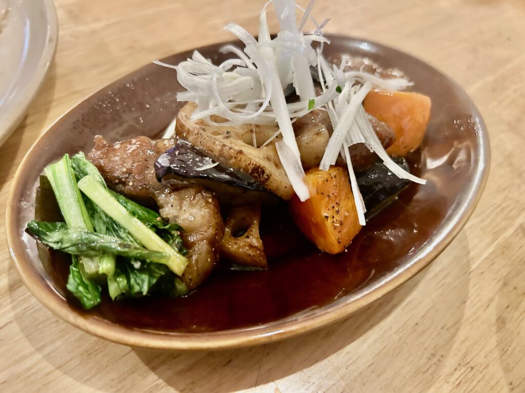 カウンターの上にはその日の料理が大皿にざっくりと盛られていてどれも食べたくなるようなものばかり。一工夫されているものばかりでまさに家庭の味わい。