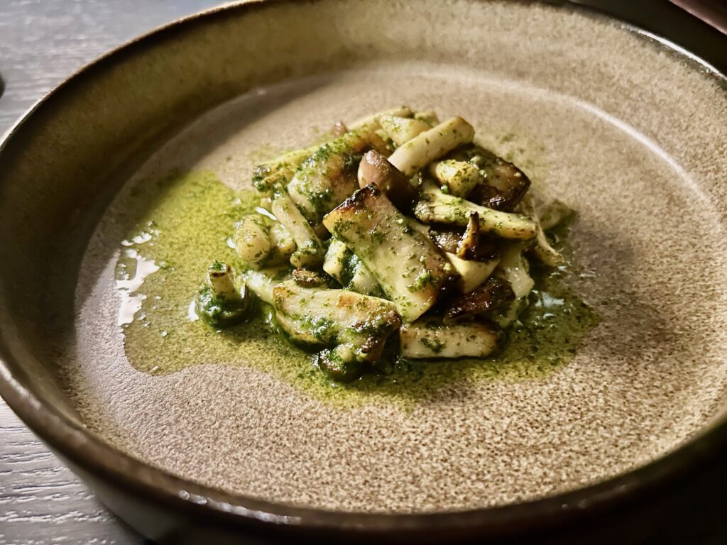 鮑とキノコのガーリックソテー1350円。量は少ないけどかなり美味しい。