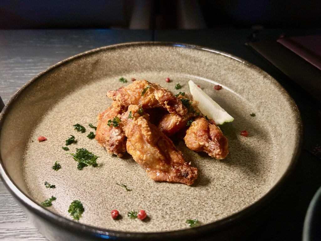 手羽先のスパイスフリット850円もスパークリングワインのいいおつまみとなる。
