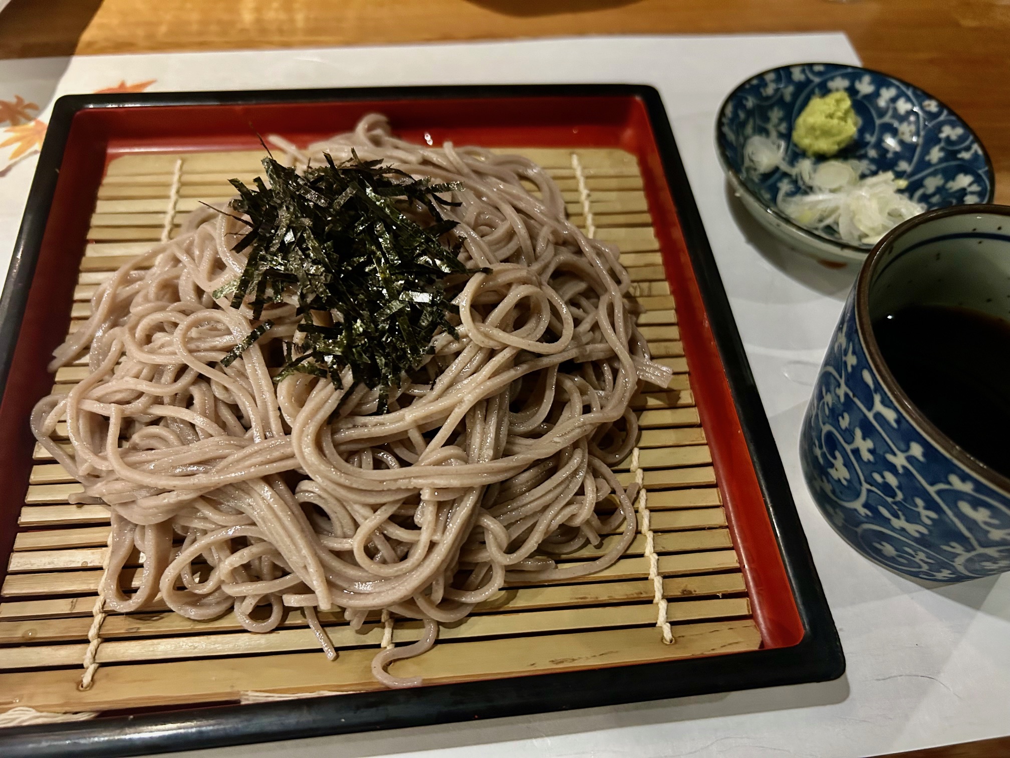 十割蕎麦なんだけど風味が弱くて少し粉っぽさあり。コシがあってツルツルして喉越しはとてもいい。海苔で蕎麦の味がわからなくなる。つゆは塩気が多め。蕎麦湯をいただいて店を出る。セットメニューやお酒の肴たくさんあるので居酒屋使いにピッタリ。ごちそうさまでした。