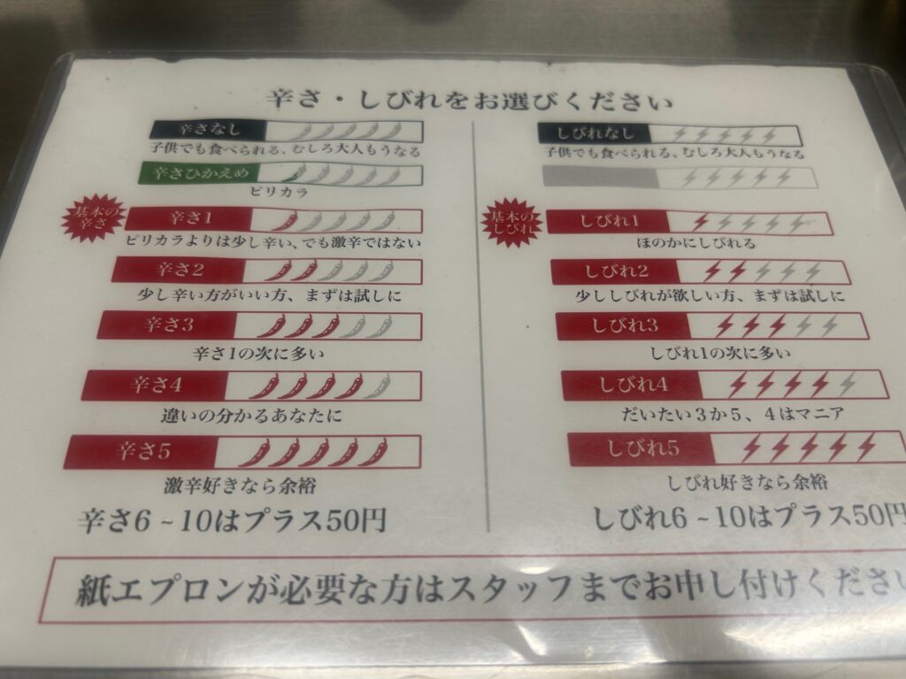 全ての「担々麺」は辛さが無しから11段階、しびれも無しから10段階まで選ぶことが出来る。子供でも食べることができるのが嬉しい。今回は2回目なので辛さ1シビレ1で注文する。