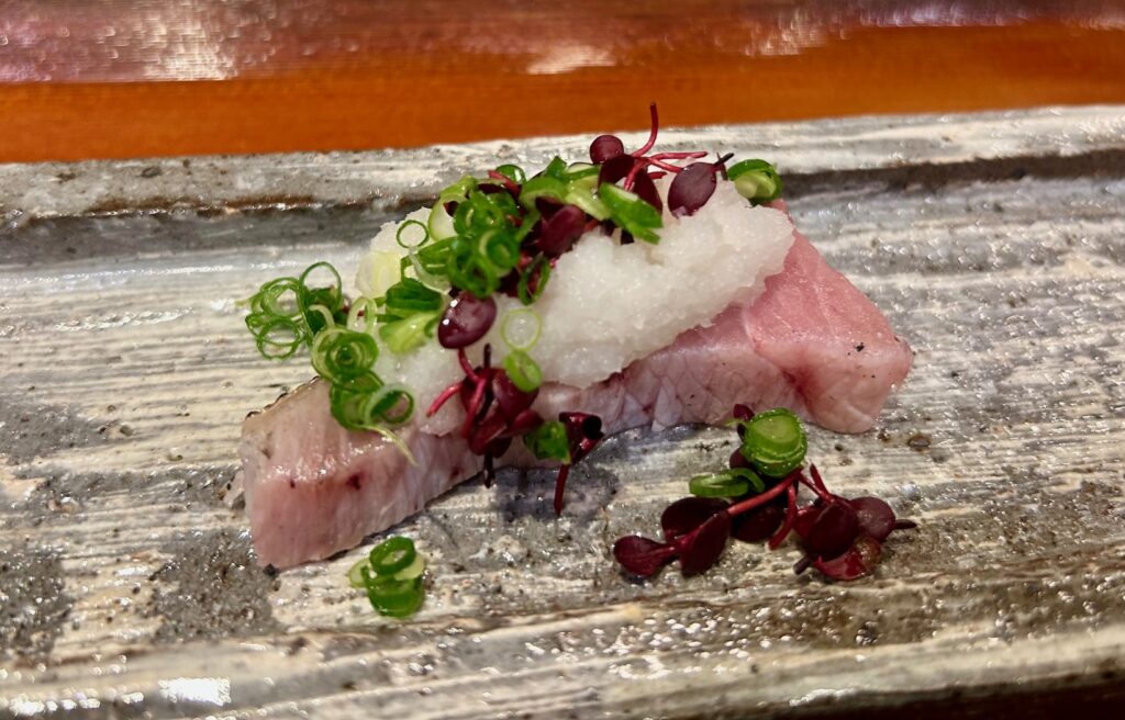 刺身の2品目の氷見の鰤はあっさりしているけど舌の上でしっかりと溶ける。辛み大根との相性もいい。