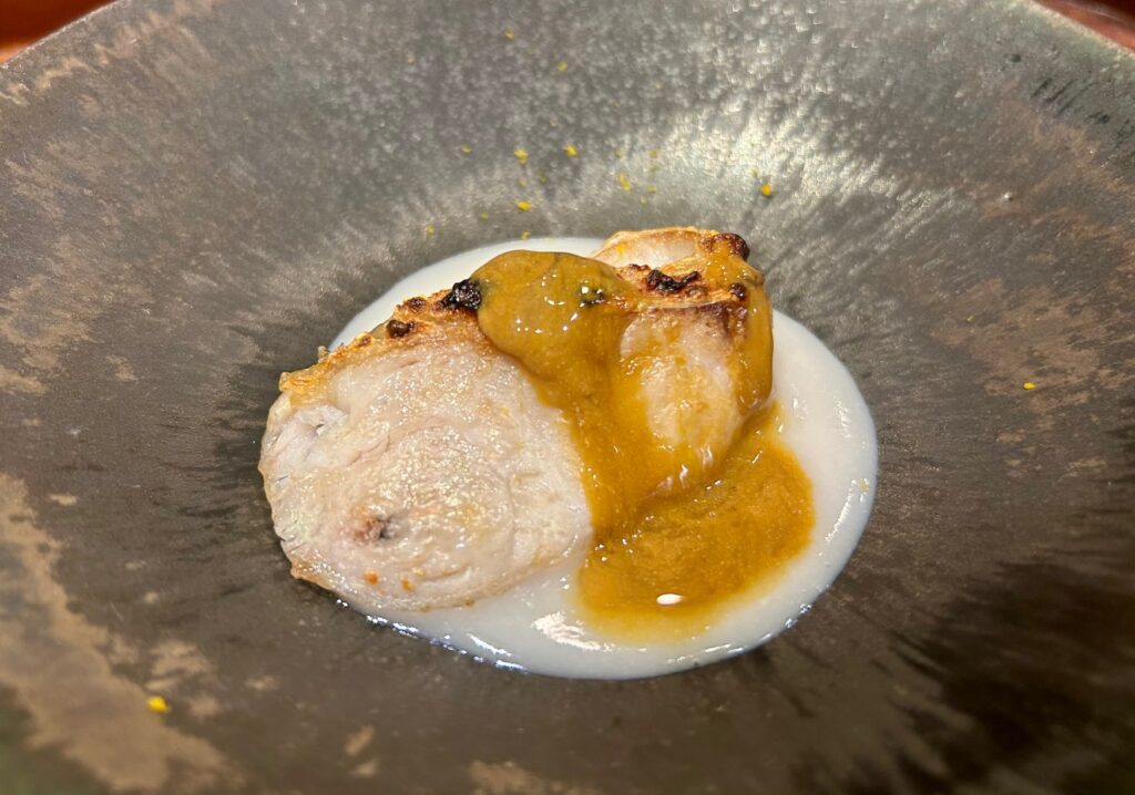 焼肴は白甘鯛。ソースは海老芋のペーストにこのわたでコクを出したもの。。これも日本酒が進みまくる・