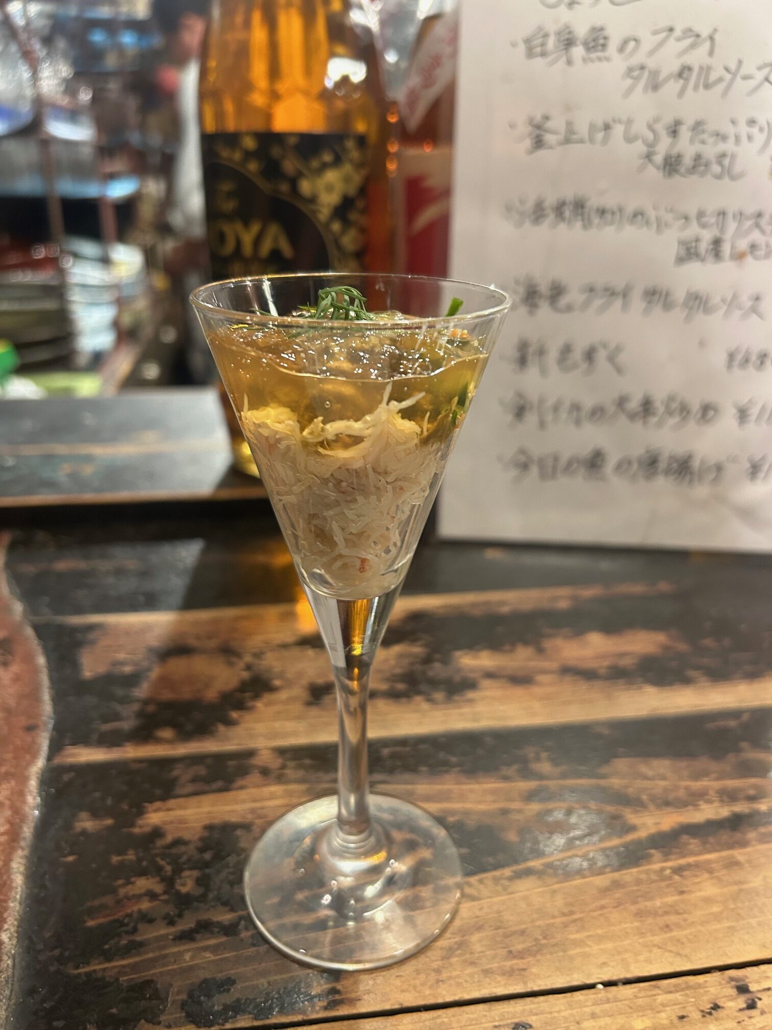 店内はカウンター8席と6人掛けテーブル1卓。本年66歳になる短パン姿のご主人とイケメン和食出身の男性で切り盛り。黒板には本日のこだわりメニューが90種類くらいずらりと並ぶ。