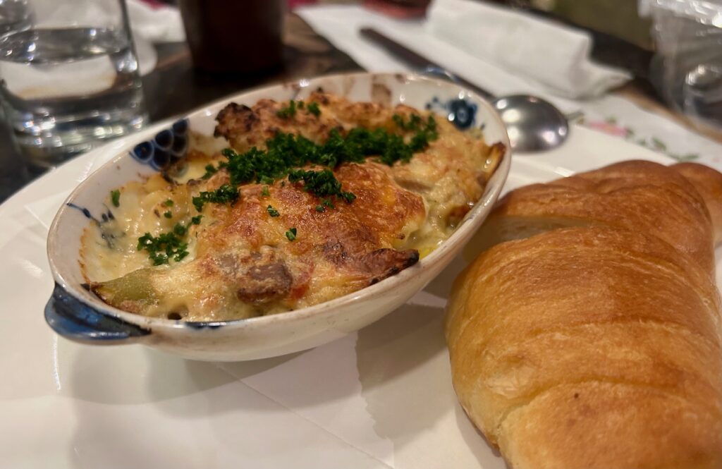 牡蠣のペンネグラタンも安定の美味しさ。美味しくて懐かしくてホッとする味わい。牡蠣は宮城産を使用。