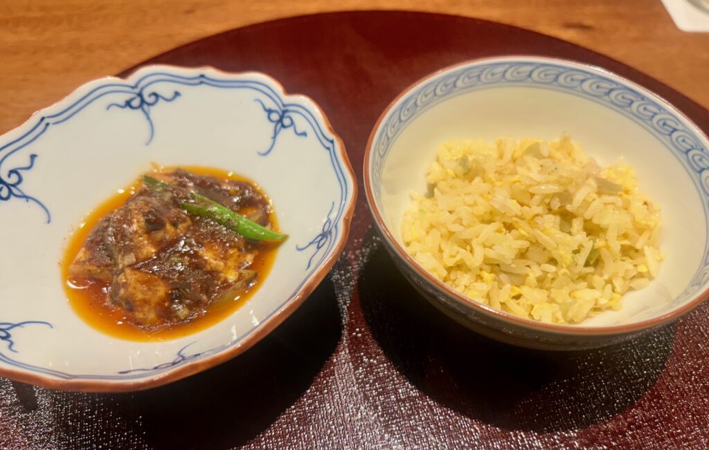 麻婆豆腐用の長粒米を使ったチャーハンと共に供される