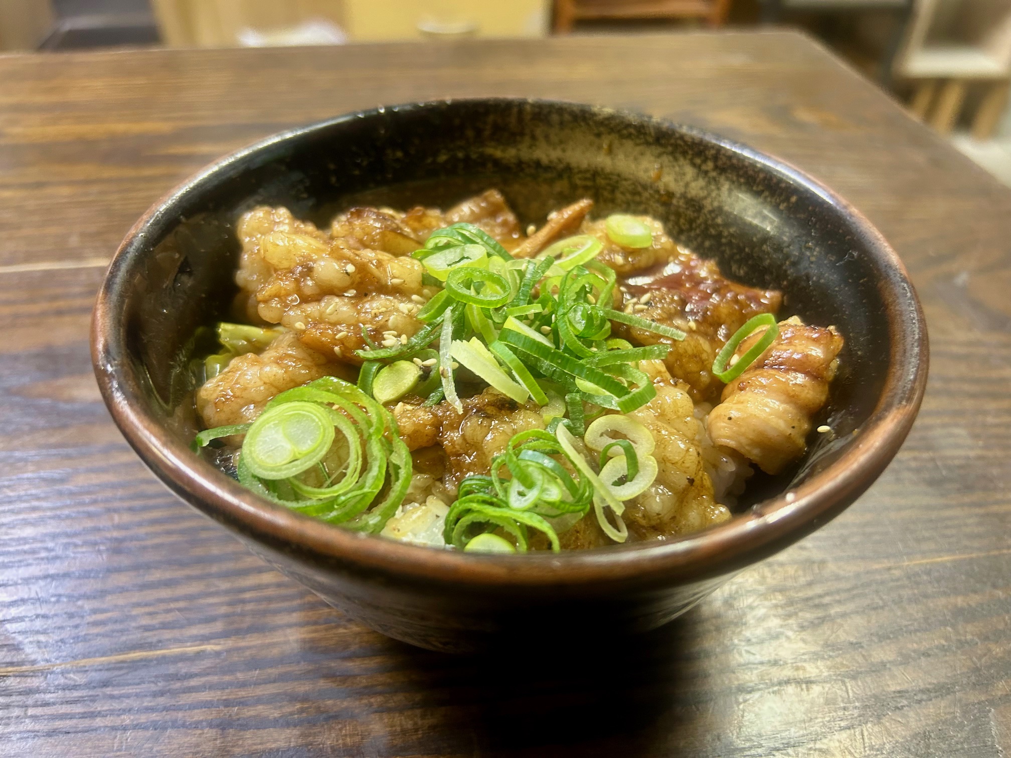 少し時間がかかったけど着丼。照りと艶のあるビジュアルが美しい。シマチョウらしきホルモンがプリプリで脂が甘くてニンニクの効いたオリジナルなタレもパンチがあって美味しい。ホルモンの下にはキャベツが口直しに敷かれている。