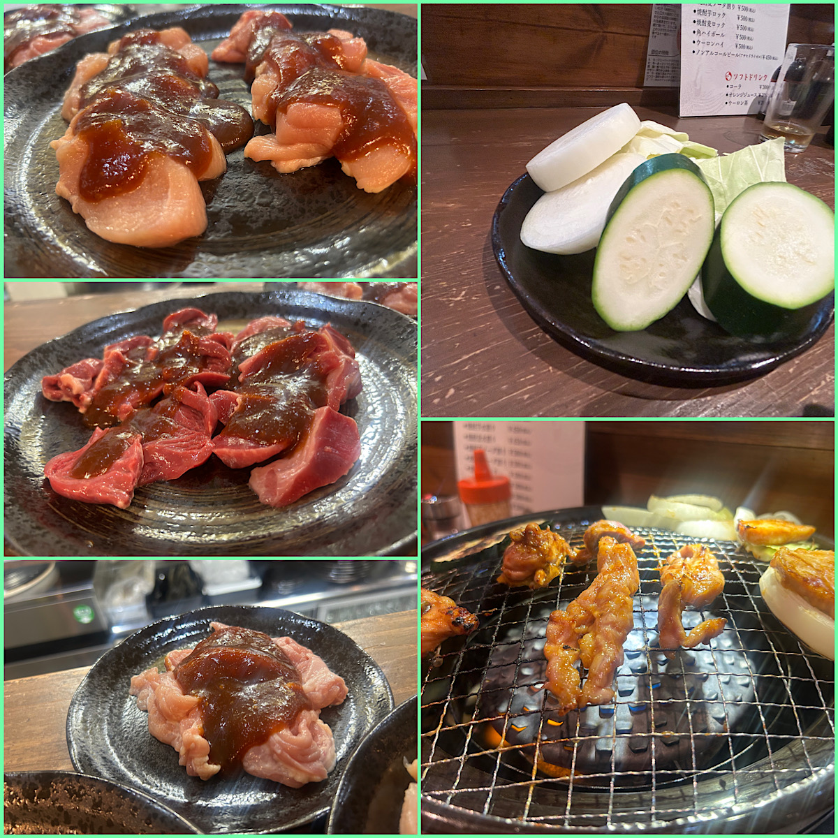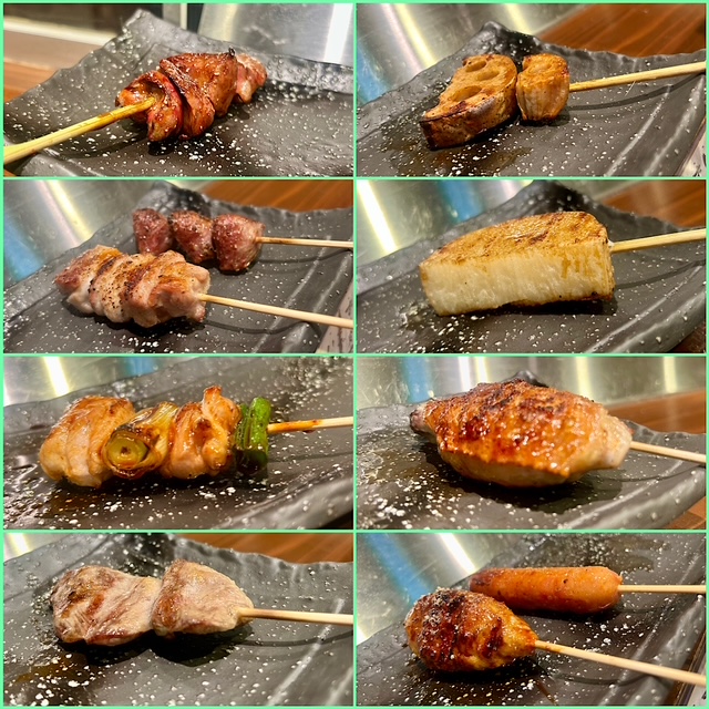 この日はねぎま200円 もも200円 巨大な手羽先240円 上肝200円 ハート180円 砂ずり180円 つくね220円 ピリ辛ウインナー180円 茄子160円(写真なし) ピーマン160円(写真なし) 蓮根180円 山芋180円など