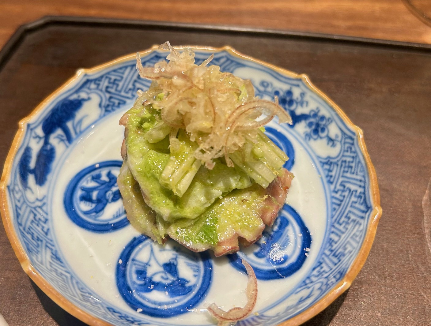 火の鳥のスペシャリティの福建海苔とくらげを丸めたもの。コリコリ食感で磯の香りがいい塩梅。