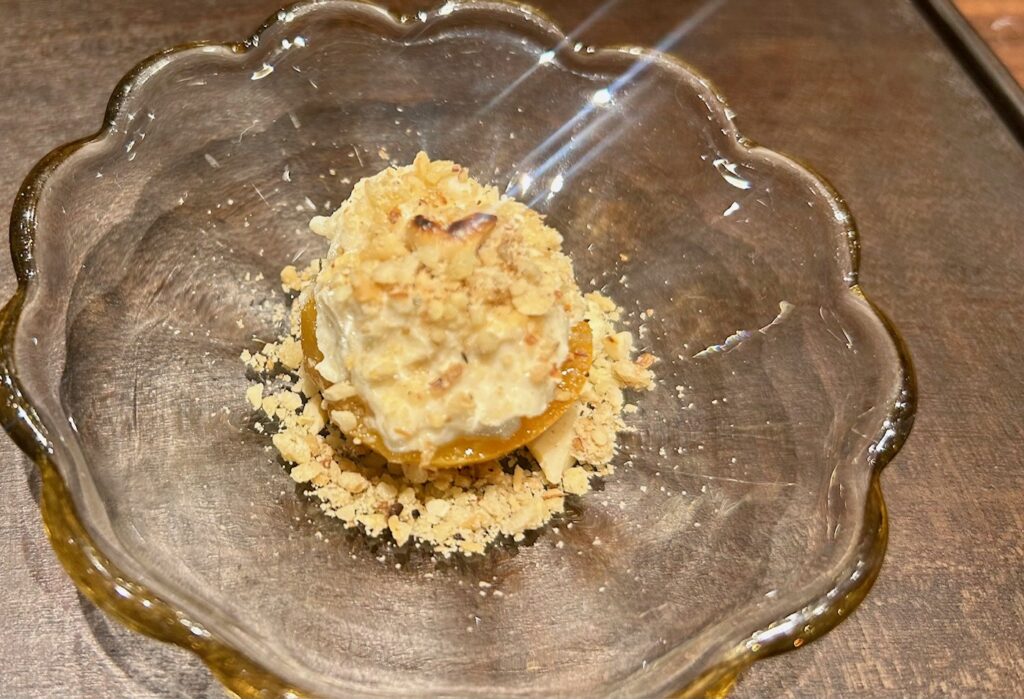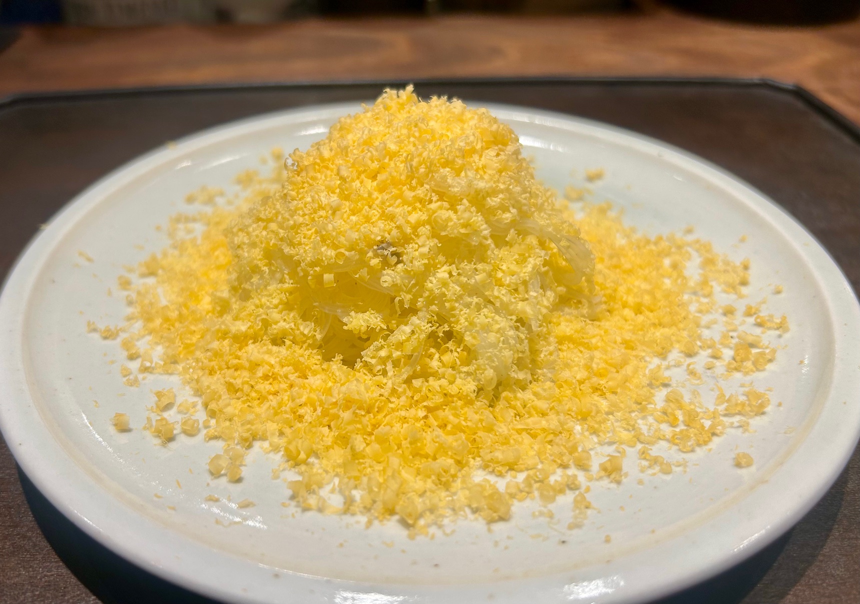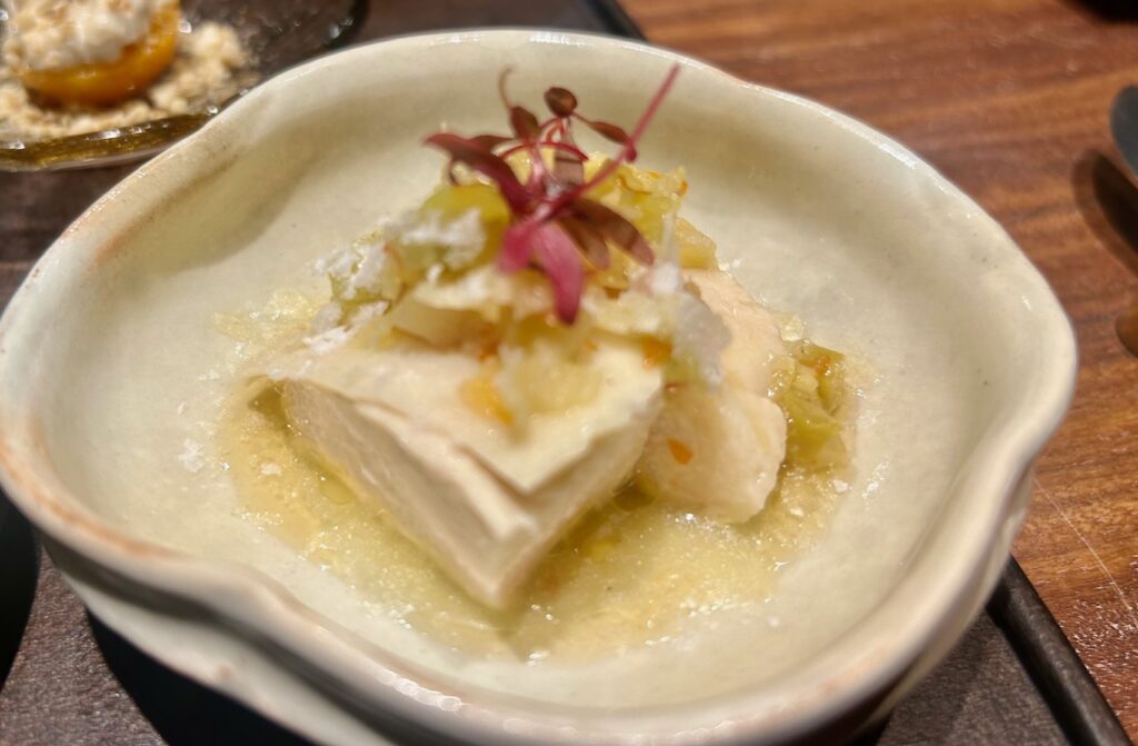 続いての「山椒とミモレットの冷製ビーフン1500円」も圧巻のこちらの店ならではの逸品。爽やかなビーフンにミモレットのコクと山椒の痺れが合わさったもの。