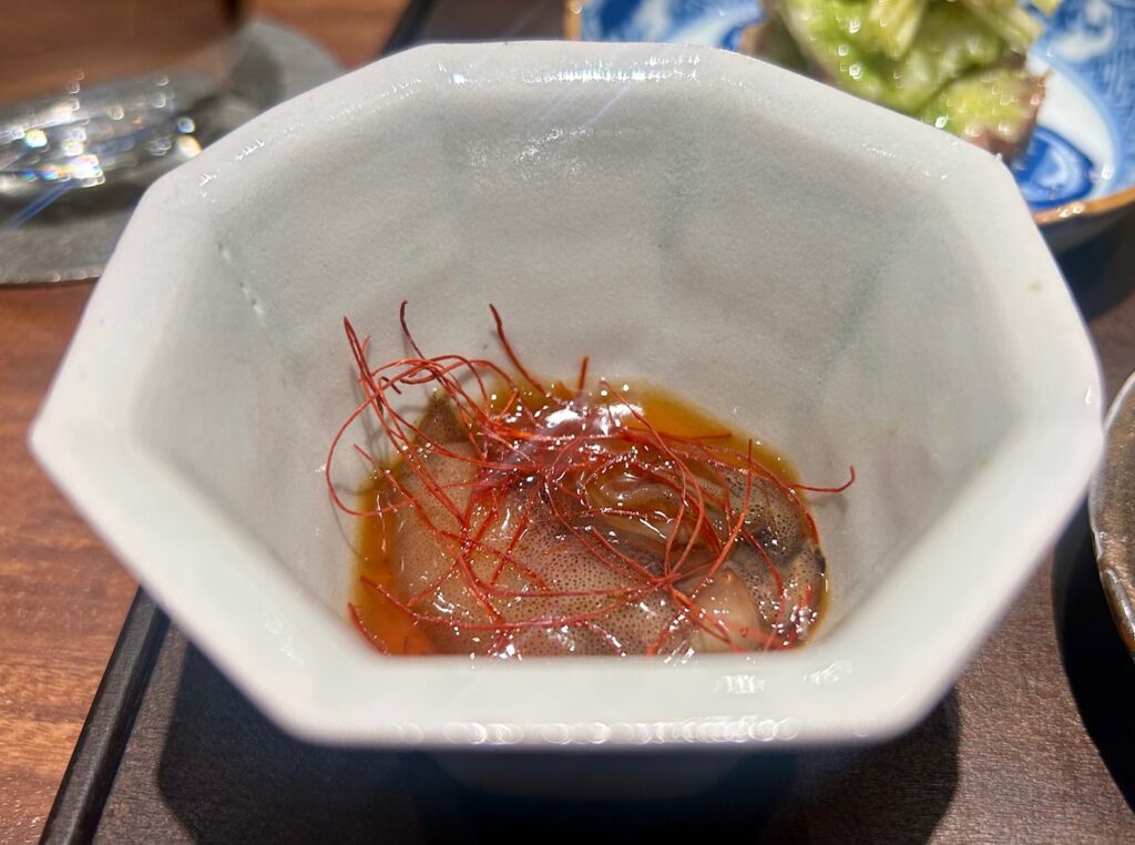 富山県ホタルイカの紹興酒漬けの糸唐辛子添えもお酒がすすみまくる