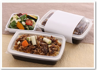 以精选的日本产牛肉为主要食材制作的咸甜味的牛肉盖浇饭,香软可口。配上蔬菜沙拉,绝对是一份不错的午餐。(盖浇饭被装在一个自加热的餐具里,一旦容器内加入水,就会自动给饭菜加热)